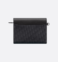 New for Spring 2025, the A5 triangle pouch is already a House staple. Crafted in black Dior Oblique jacquard, it features a tonal grained calfskin flap with Saddle lines, a spacious zip compartment to store a phone and card slots. A removable wrist strap makes the pouch easy to carry by hand or slip into a bag. - Main composition: cotton, calfskin and technical fabric - Cotton, technical fabric and calfskin lining - Main zip compartment with flap - Interior slip pocket - Six card slots - Christian Dior removable wrist strap in nylon jacquard - Ruthenium-finish brass Dior signature on the front - Embossed Dior signature on the interior - Dust bag included - Made in Italy/Spain Size & Fit - Dimensions: 26 x 18 x 5 cm / 10 x 7 x 2 inches (Length x Height x Width) - The main compartment's size is suitable for all phones
