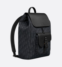 The Saddle backpack with flap offers a modern and original take on the Saddle design. Constructed in black Dior Oblique jacquard, it is embellished with tonal grained calfskin detailing and a Dior signature on the front. The spacious bag has a compartment to hold all the essentials, while the Saddle flap pocket and aluminum buckle on the front provide easy access to a wallet, keys, headphones or phone. The practical backpack will lend the finishing touch to any outfit. - Nylon interior - Main compartment with flap and drawstring cord - Interior flat compartment for laptop - Flap pocket with CD-signature aluminum buckle on the front - Leather top handle - Adjustable padded shoulder straps - Padded mesh back with Dior signature - Ruthenium-finish brass Dior signature on the front - Embossed Dior signature on the interior - Dust bag included - Made in Italy Size & Fit - Dimensions: 26.5 x 40 x 15 cm / 10.5 x 15.5 x 6 inches (Length x Height x Width) - The main compartment's size is suitable for a 15-inch laptop computer, A4 documents and a tablet - Weight: 961 g / 34 ounces