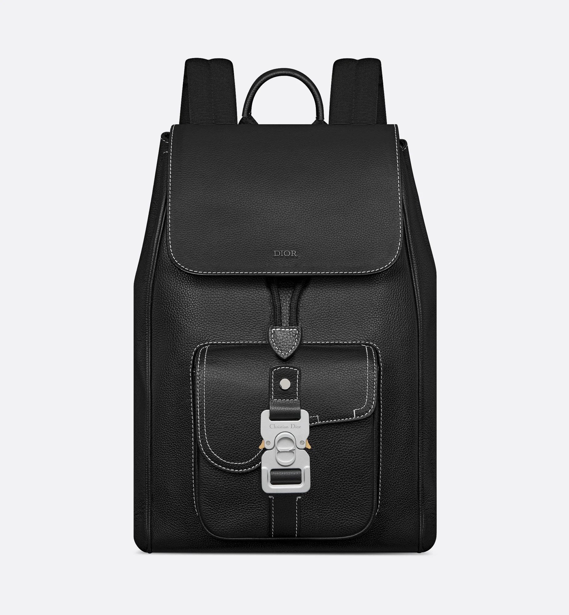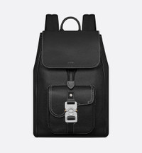 The Saddle backpack with flap offers a modern and original take on the Saddle design. The black grained calfskin with contrasting topstitching is embellished with the Dior signature on the front. The spacious bag has a compartment to hold all the essentials, while the Saddle flap pocket and aluminum buckle on the front provide easy access to a wallet, keys, headphones or phone. The practical backpack will lend the finishing touch to any outfit. - Dior Oblique nylon interior - Main compartment with flap and drawstring cord - Interior flat compartment for laptop - Flap pocket with CD-signature aluminum buckle on the front - Leather top handle - Adjustable padded shoulder straps - Padded mesh back with Dior signature - Ruthenium-finish brass Dior signature on the front - Embossed Dior signature on the interior - Dust bag included - Made in Italy Size & Fit - Dimensions: 26.5 x 40 x 15 cm / 10.5 x 15.5 x 6 inches (Length x Height x Width) - The main compartment's size is suitable for a 15-inch laptop computer, A4 documents and a tablet - Weight: 830 g / 29.5 ounces