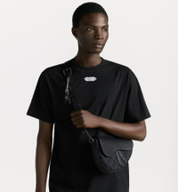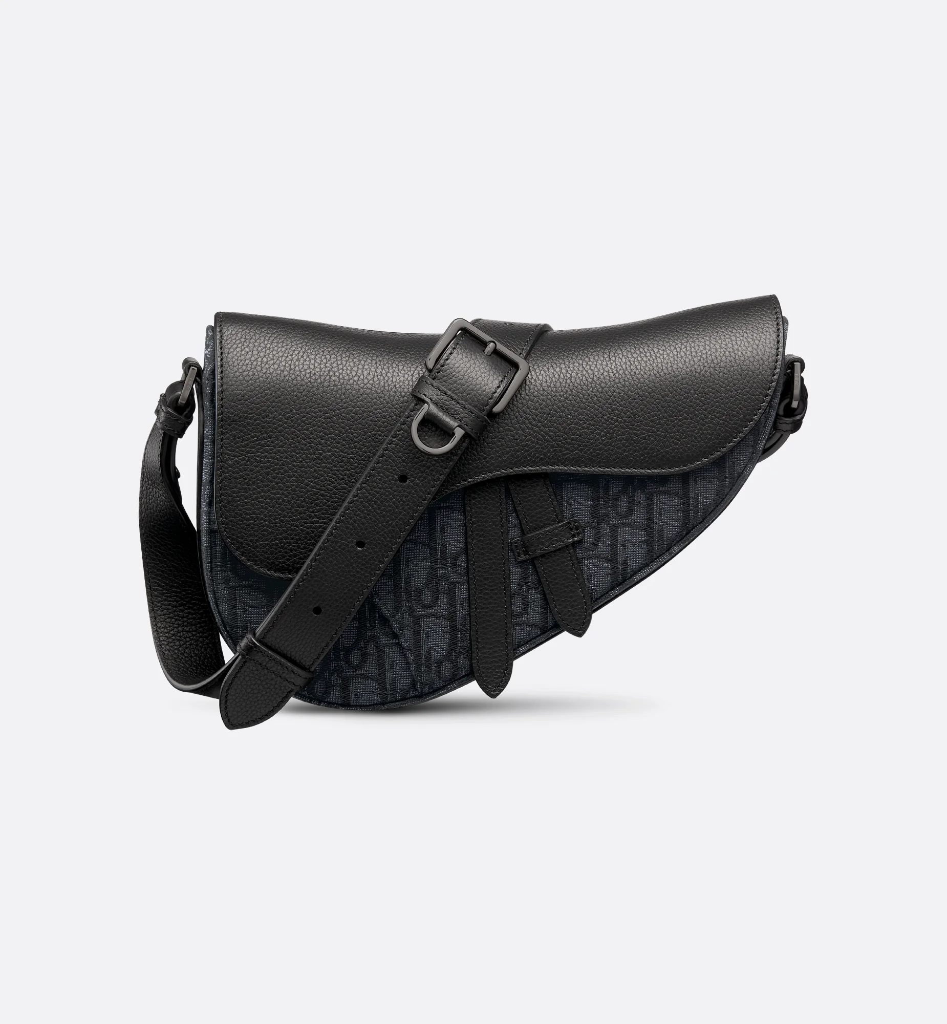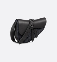 New for Winter 2025, Dior's classic Saddle bag is revisited with a modern construction. The black Dior Oblique jacquard style is enhanced by a tonal grained calfskin magnetic flap with iconic lines that opens to reveal a spacious compartment with a zip pocket for added practicality. The adjustable and removable strap is completed by a D-ring to attach accessories and allows it to be worn comfortably crossbody or carried by hand. - Main composition: cotton, calfskin and technical fabric - Technical fabric, cotton and calfskin lining - Main compartment with magnetic flap - Interior zip pocket - Adjustable and removable leather shoulder strap with D-ring to attach accessories - Embossed Dior signature on the back - Embossed Dior signature on the interior - Dust bag included - Made in Italy Size & Fit - Dimensions: 26 x 17 x 5 cm / 10 x 6.5 x 2 inches (Length x Height x Width) - The size is suitable for all phone models - Size and weight details may vary depending on the product's material