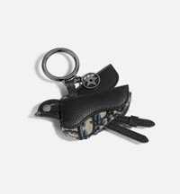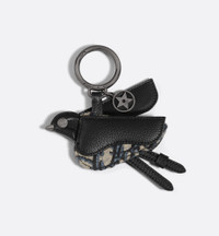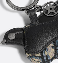 New for Winter 2025, the key ring displays a delicate bird inspired by the iconic Saddle design. The style is crafted in beige and black Dior Oblique jacquard, enhanced by black grained calfskin detailing. Completed by a Dior signature star medallion and a Dior-engraved split ring in ruthenium-finish brass, the key ring can be easily attached to a belt loop or bag. - Main composition: calfskin, cotton, brass and technical fabric - Dior-engraved split ring - Saddle flap bird with CD signature - Dior-engraved star medallion - Dust bag included - Made in Italy or Spain Size & Fit - One size - Dimensions: 10 x 16 x 2.5 cm / 4 x 6.5 x 1 inches (Length x Height x Width) - Size and weight details may vary depending on the product's material