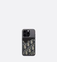 The Saddle magnetic card holder is a refined accessory that demonstrates the House's savoir-faire in leather marquetry. Crafted in beige and black Dior Oblique jacquard and black grained calfskin, it features a card slot with an iconic Saddle curve. Enhanced by the Dior signature, the elegant card holder will pair with a MagSafe phone cover. - One card slot - Ruthenium-finish brass Dior signature on front - Embossed Dior signature on interior - Dust bag included - Made in Italy/Spain Size & Fit - Dimensions: 6.5 x 9.5 cm / 2.5 x 3.5 inches (Length x Height) - The size is suitable for credit cards