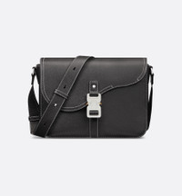 The Saddle messenger bag with flap enhances the iconic line with a classic design imbued with subtle elegance. Crafted in black grained calfskin with contrasting topstitching, it features a Saddle flap with an aluminum Christian Dior signature buckle. The adjustable leather strap allows the bag to be carried over the shoulder or crossbody. - Nylon interior - Main compartment with flap featuring CD-signature aluminum buckle - Interior slip pocket - Rear slip pocket - Adjustable leather shoulder strap - Embossed Dior signature on the interior - Dust bag included - Made in Italy Size & Fit - Dimensions: 31 x 23 x 8 cm / 12 x 9 x 3 inches (Length x Height x Width) - The main compartment is suitable for a 13-inch laptop computer and A4 documents - Strap length: 97 – 133 cm / 38 – 52.5 inches - Drop length: 41 – 60 cm / 16 – 23.5 inches - Weight: 939 g / 33 ounces