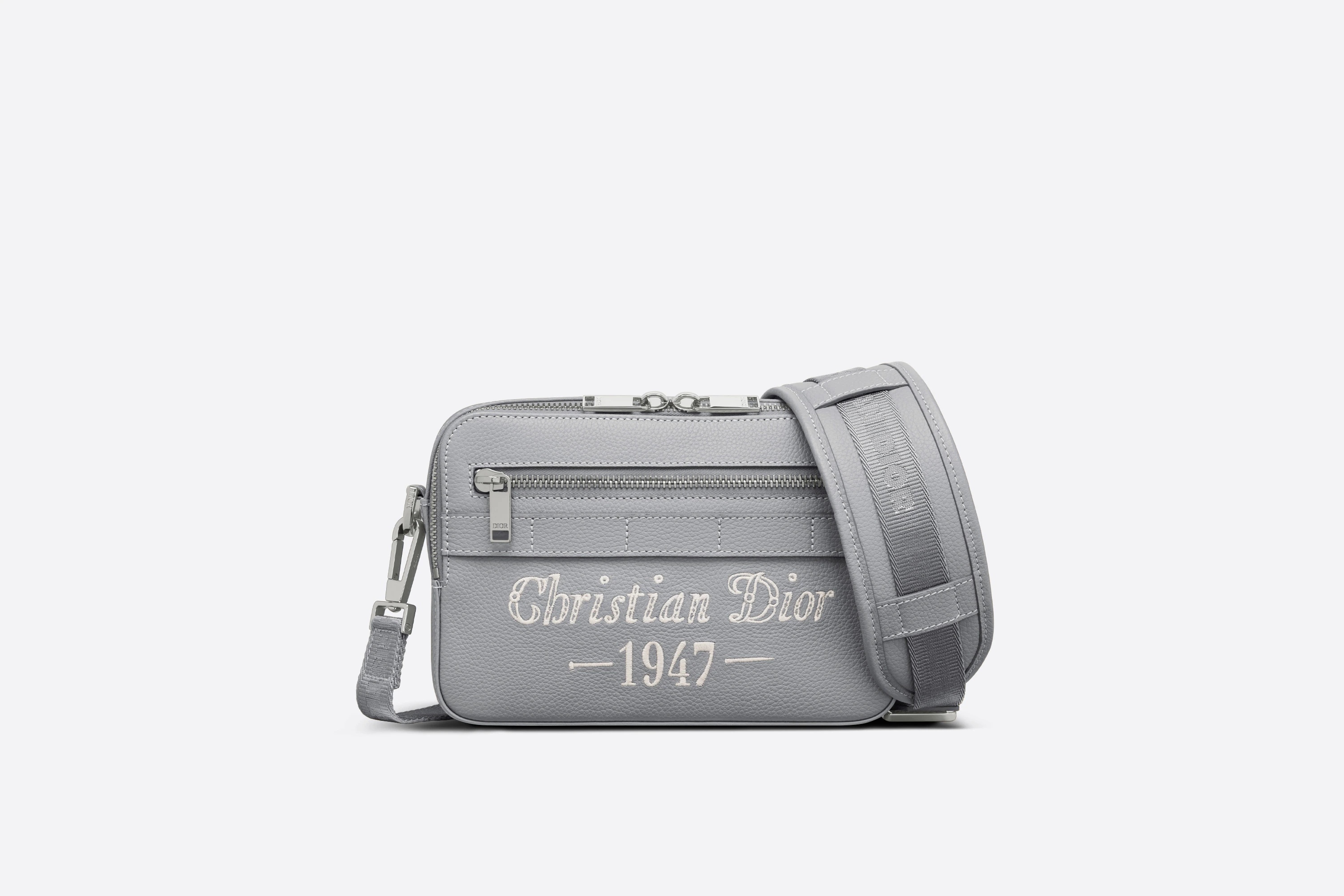 The Safari Messenger bag is a practical and compact style and can be carried daily. Crafted in Dior gray grained calfskin, it boasts the embroidered 'Christian Dior 1947' signature, honoring the House's heritage. The zipped compartment and the front pocket allow all the essentials to be kept within reach, and the bag may be worn over the shoulder or crossbody thanks to its 'CHRISTIAN DIOR' adjustable shoulder strap. - Dior Gray grained calfskin with embroidered 'Christian Dior 1947' signature on the front - Interior embossed with 'DIOR' signature - Two-way zip closure on the top - Calfskin and nylon jacquard adjustable and removable 'CHRISTIAN DIOR' shoulder strap - Front zip pocket - Dust bag included - Made in Italy Size & Fit - Dimensions: 22 x 15 x 6 cm / 9 x 6 x 2.5 inches - The size is suitable for an iPad mini