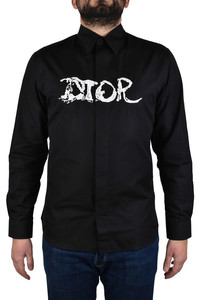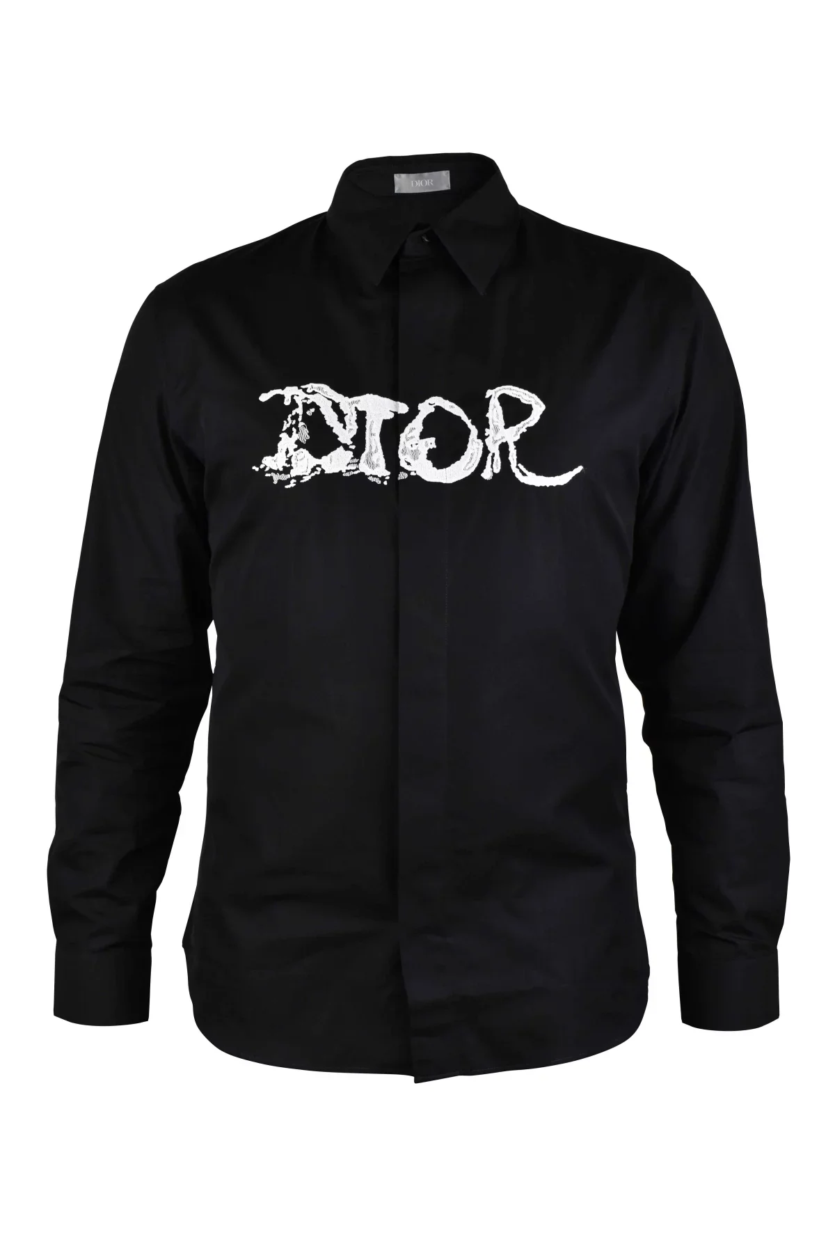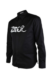 Shirt Dior black cotton. Inscription Dior white embroidered center. Hidden button placket. Long sleeves. Made in Italy.