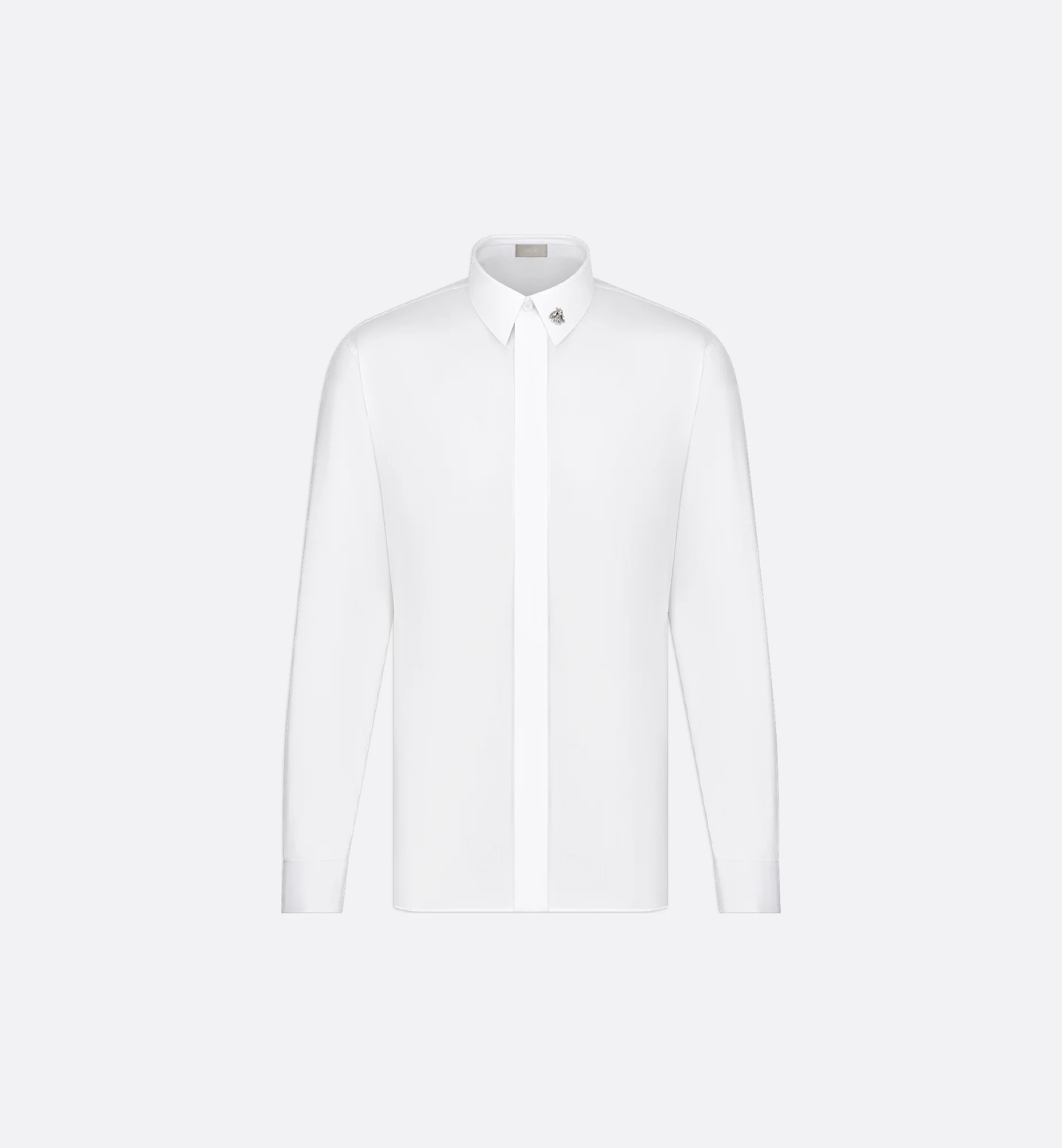 Tailoring is quintessential Dior atelier savoir-faire and lies at the heart of House heritage. Celebrating this unique expertise, Kim Jones, Creative Director of Dior Men, reimagines the codes of elegance of an iconic Dior silhouette: the white shirt. Crafted in white cotton poplin, it is embellished with a bee embroidered with beads and crystals on the collar. The shirt can be coordinated with a suit to convey an elegant and sophisticated look for any special occasion. - Bee jewel embroidered with silver-tone beads and crystals on the collar - Collar: 6.5 cm / 2.5 inches - Concealed button placket - Mother-of-pearl buttons with Dior signature - Shirttail hem - 100% cotton 120/2 - Made in Italy Size & Fit - Classic fit - Back length: 80 cm / 31.5 inches (size 39) - Using our personalized tool will provide you with the best size recommendation - For more information, please review the size guide