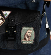 The Saddle messenger bag with flap is a modern and compact design. Crafted in black Dior Oblique jacquard, it is adorned with multicolor Dior Mountain patches imbued with an alpine spirit and Dior's couture codes inspired by House archives. The tonal grained calfskin flap with Saddle lines is elevated by an aluminum buckle. The spacious interior and rear slip pocket can accommodate all the essentials, while the adjustable leather and Christian Dior jacquard strap allows the small bag to be worn over the shoulder or crossbody. - Main composition: technical fabric, cotton and calfskin - Technical fabric, cotton and calfskin lining - Main compartment with flap and CD aluminum buckle - Interior slip pocket - Rear slip pocket - Adjustable leather and Christian Dior nylon jacquard shoulder strap - Embossed Dior signature on the interior - Dust bag included - Made in Italy Size & Fit - Dimensions: 23 x 17.5 x 6 cm / 9 x 7 x 2.5 inches (Length x Height x Width) - The main compartment's size is suitable for all phone models - Strap length: 92 – 128 cm / 36 – 50.5 inches - Drop length: 41.5 – 60 cm / 16.5 – 23.5 inches - Weight: 600 g / 21 ounces - Size and weight details may vary depending on the product's material