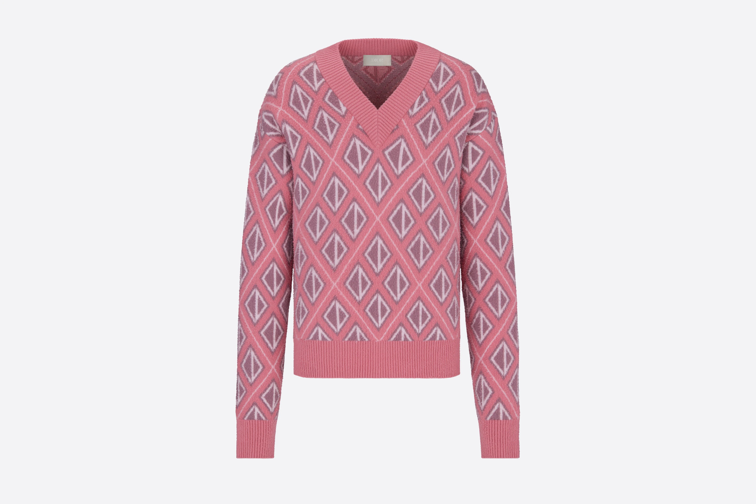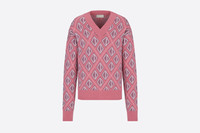 The sweater offers an elegant new take on the modern codes of the House. Crafted in pink wool and cashmere knit, it is enhanced by the CD Diamond jacquard motif and is distinguished by its pilled Casentino effect. The oversized silhouette is completed by a V-neck and ribbed finishes. The comfortable sweater will lend a graphic touch to any outfit. *This garment is crafted in a medium-weight knit - All-over CD Diamond jacquard - Casentino treatment with pilling effect - Ribbed V-neck, cuffs and hem - Asymmetric hem - Side slits - 70% wool, 30% cashmere (12-gauge)* - Made in Italy Size & Fit - Oversized fit - Back length: 77 cm / 30.5 inches (size M) - For more information, please review the size guide