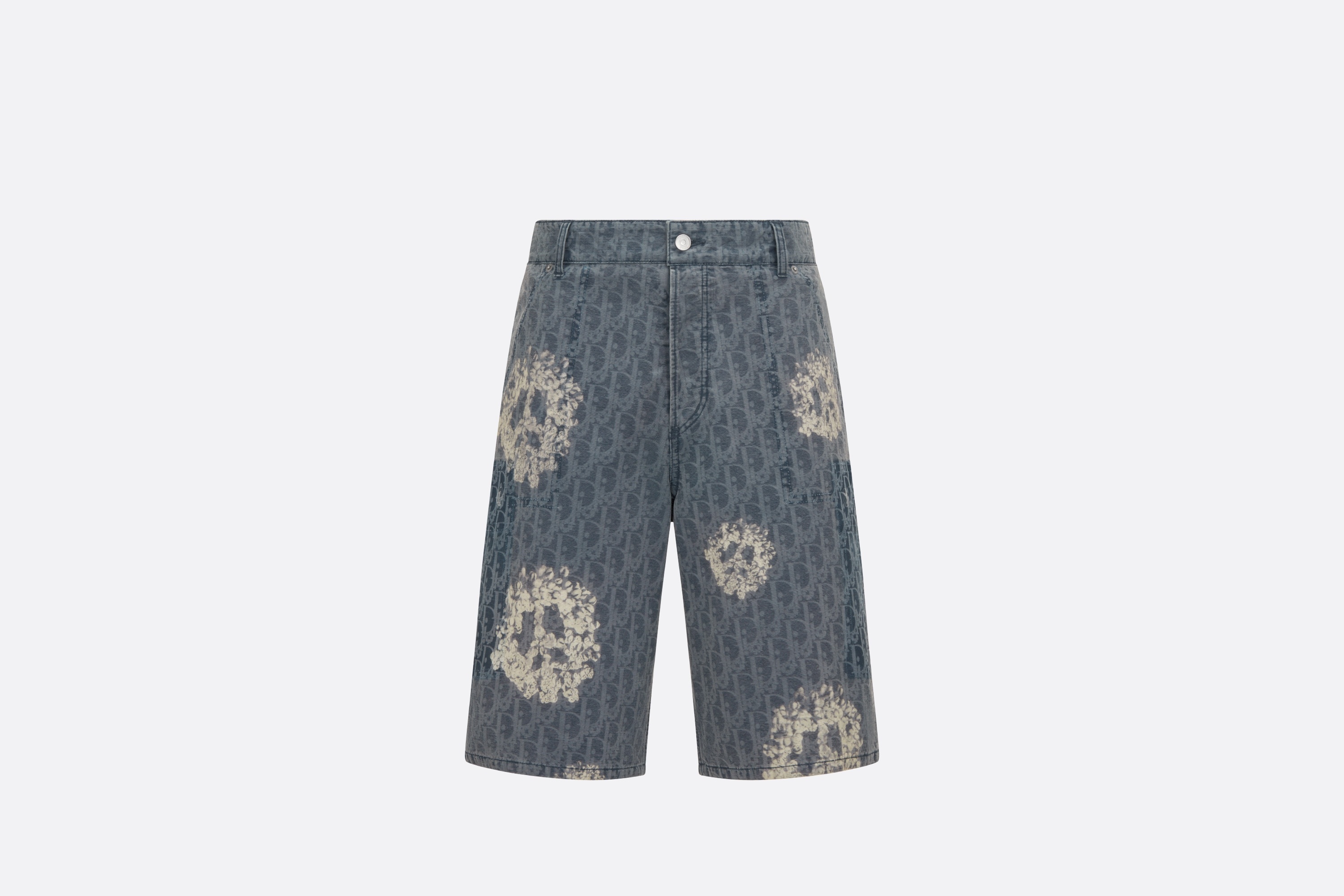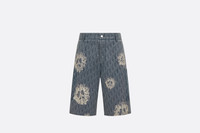 Part of the DIOR TEARS collaboration, the Bermuda shorts showcase a casual design. Crafted in blue cotton denim laser-drawn with the Dior Oblique motif and layered with printed cotton flowers representing the Peace Sign motif, a signature of the Dior Tears collaboration, the Bermuda shorts feature a classic straight cut. They will create a set with the matching zipped blouson. - All-over Dior Oblique motif layered with the Peace Sign - Belt loops - Zip and metal button fastening - Side slit and rear patch pockets - 100% cotton - Made in Japan Size & Fit - Mid-rise waist - Side length: 54 cm / 21.5 inches (size 48) - For more information, please review the size guide