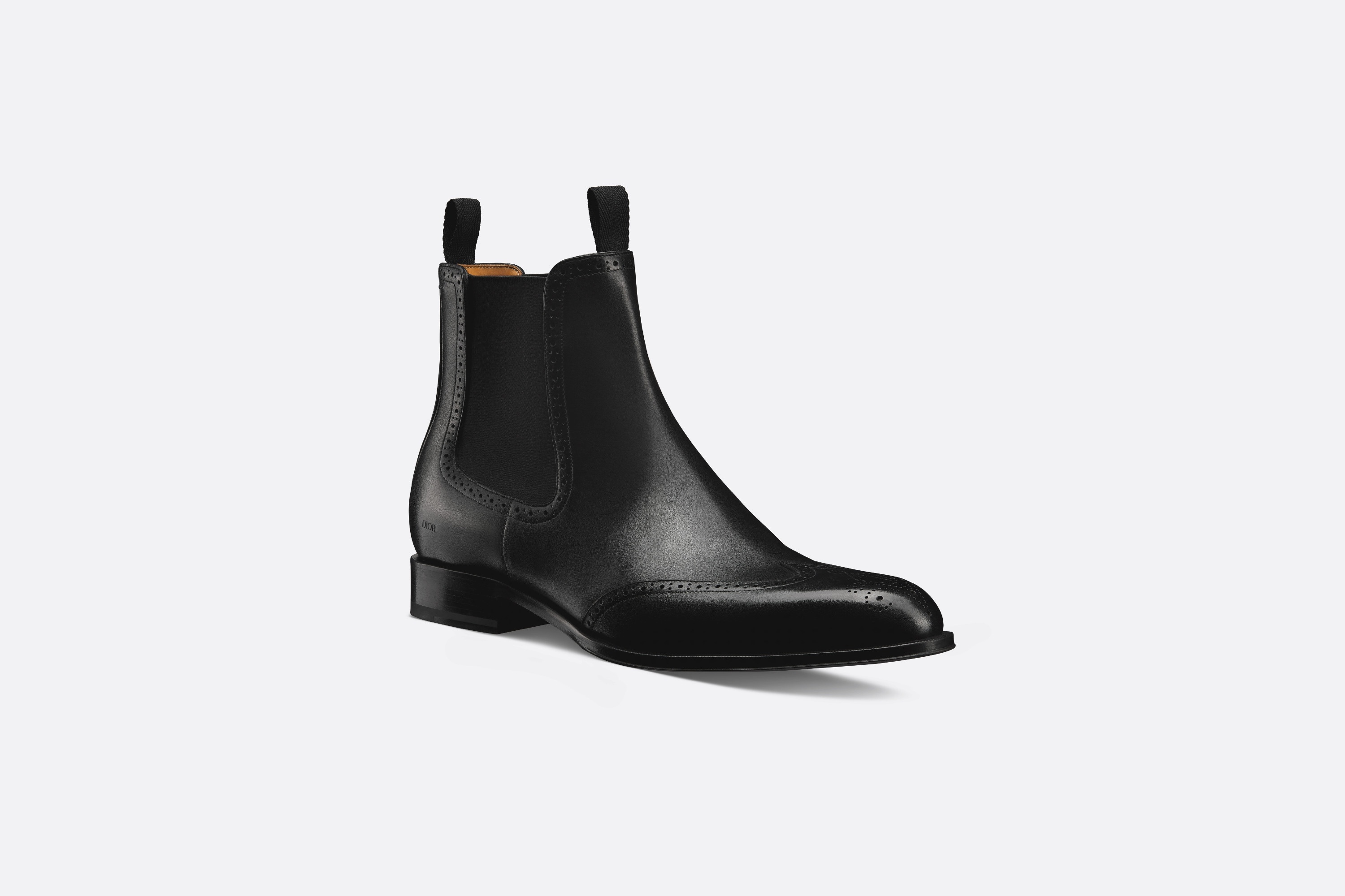 New for Spring 2024, the Dior Timeless Chelsea boot embodies Dior's classic elegance. The style offers instant sophistication thanks to its slim silhouette in black smooth calfskin adorned with decorative perforations that suggest the CD Diamond motif. Enhanced by tonal elastic bands and the Dior signature delicately embossed and engraved on the heel, the piece embodies the House's exceptional savoir-faire. The comfortable and lightweight shoe has a Blake-construction leather sole with a non-slip detail. The elegant ankle boot can be worn with any suit. - Black smooth calfskin - Elastic bands on the sides - Dior signature on the vamp and heel - CD Diamond perforations on the toe - High-top - Slip-on style with pull tabs - Leather sole with non-slip rubber insert - Blake construction - Dust bag included - Made in Italy Size & Fit - The style fits true to size, we recommend ordering your normal shoe size - Weight: approximately 485 g / 17 ounces - For more information, please review the size guide