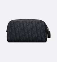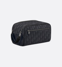 The toiletry bag is a functional accessory with a streamlined silhouette. Crafted in black Dior Oblique jacquard, it is embellished with tonal grained calfskin trim and a Dior signature on the front. The style features a zip pocket on the front as well as a spacious zip compartment with two slip pockets. Equipped with a leather handle, the toiletry bag can be carried by hand or tucked into any bag. - Main composition: cotton, calfskin and technical fabric - Technical fabric, cotton and calfskin lining - Double zip closure with grained calfskin handle - Two interior slip pockets - Front zip pocket - Ruthenium-finish brass Dior signature on the front - Embossed Dior signature on the interior - Dust bag included - Made in Italy Size & Fit - Dimensions: 24.5 x 14.5 x 13 cm / 9.5 x 5.5 x 5 inches (Length x Height x Width) - Weight: 306 g / 11 ounces