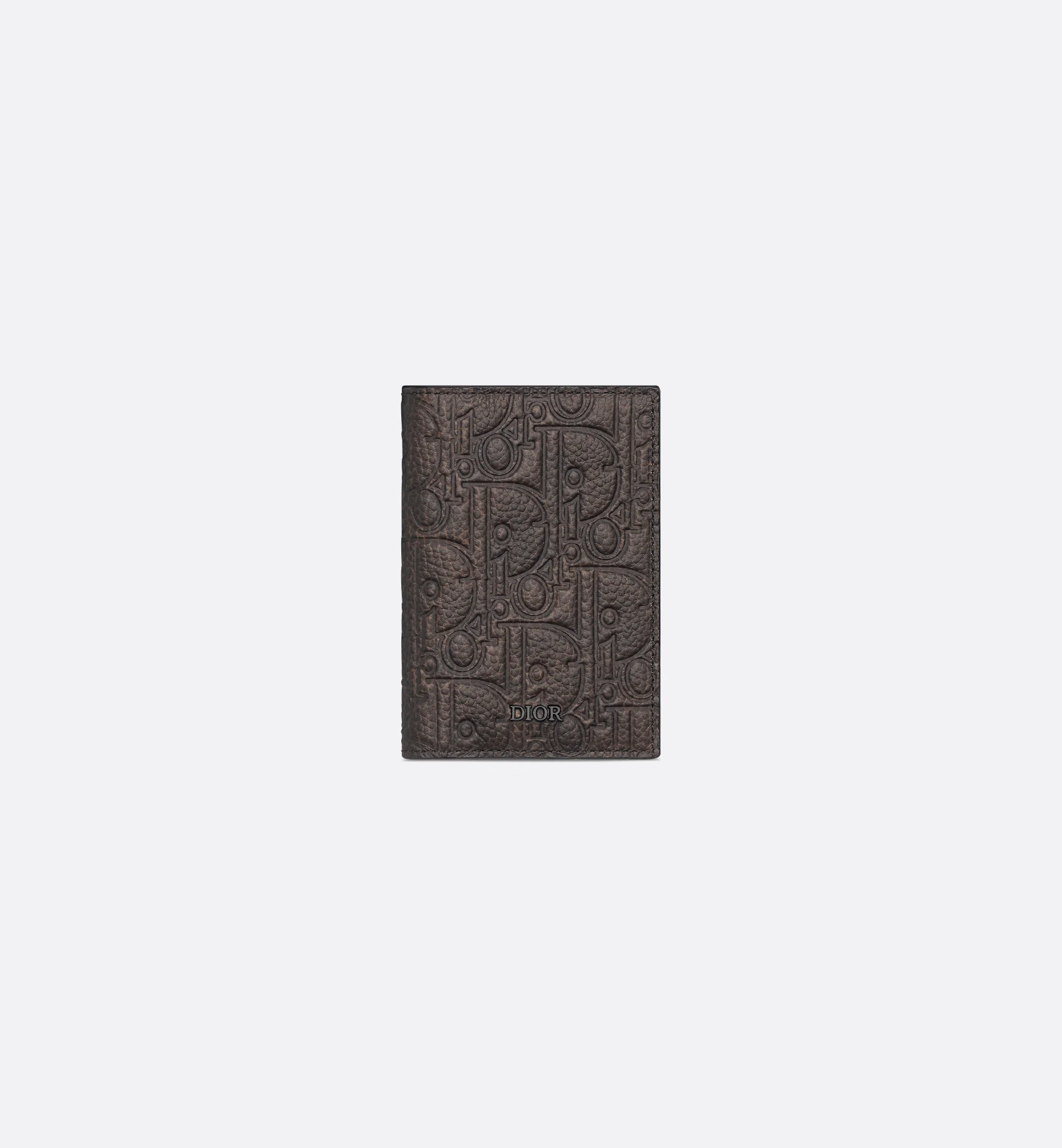 The vertical bifold card holder is a practical piece with refined charm. An expression of the Dior ateliers' virtuosity, it is crafted in Dior Gravity Vintage leather, showcasing the iconic motif delicately embossed on brown calfskin with a unique aged effect. Enhanced by the Dior signature on the front, it features three card slots on either side as well as two additional slots to house receipts. The elegant card holder will slip easily into any pocket. - Main composition: calfskin - Calfskin and technical fabric lining - Six card slots - Two slip pockets for receipts - Ruthenium-finish brass Dior signature on the front - Embossed Dior signature on the interior - Dust bag included - Made in Italy or Spain Size & Fit - Dimensions: 8.2 x 11.2 cm / 3 x 4.5 inches (Length x Height) - The size is suitable for credit cards - Size and weight details may vary depending on the product's material