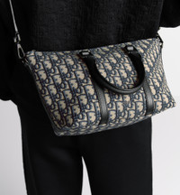 The Weekender 25 is both sophisticated and timeless. Crafted in beige and black Dior Oblique jacquard, the silhouette offers a new take on the iconic House motif, and is enhanced by black grained calfskin detailing and the Dior signature on the front. Its generously sized main zip compartment can accommodate all the daily essentials. Featuring an adjustable and removable strap, as well as leather top handles, the Weekender 25 can be carried by hand or worn over the shoulder. - Main composition: cotton, calfskin and technical fabric - Cotton, technical fabric and calfskin lining - Main zip compartment - Interior zip pocket - Leather top handles - Adjustable and removable leather shoulder strap with lobster clasps - Ruthenium-finish brass Dior signature on the front - Embossed Dior signature on the interior - Dust bag included - Made in Italy Size & Fit - Dimensions: 31 x 18 x 12 cm / 12 x 7 x 4.5 inches (Length x Height x Width) - Strap length: 101 – 130 cm / 40 – 51 inches - Drop length: 46 – 59 cm / 18 – 23 inches - Weight: 655 g / 23 ounces
