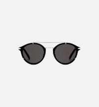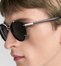 The DiorBlackSuit R7U sunglasses, crafted in bio-acetate, enhance the collection with a sophisticated pantos form. The black frame reveals a signature hinge inspired by the stitched details of Dior Men suits, as well as an engraved CD logo. Thin struts and a subtle border in silver-finish metal complement the gray lenses, while the double bridge lends a touch of modern elegance. - Black bio-acetate frame - Dior eyewear collections in bio-acetate contain an average of 65% biodegradable materials - Gray lenses - Engraved CD signature hinge - 100% UVA/UVB protection - Filter category: 3 - Suitable for prescription - Made in Italy Size & Fit - The adjustable metal nose pads can adapt to all face shapes - Lenses: 50 mm / 2 inches, Bridge: 23 mm / 1 inch, Temples: 145 mm / 5.5 inches