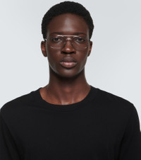 Made in Italy, Dior Eyewear's DiorBlackSuitO N2U aviator glasses have a silver-tone metal frame, a double-bar bridge, and non-prescription rectangular lenses. Product Details - Frame color: silver - Frame material: metal - Lens color: transparent - Lens type: can be fitted with prescription lenses - comes with cleaning cloth - comes with a case and presentation box - The color of the case may vary - Made in Italy - Item number: P00832271 Size & Fit - Lens width: 55mm-2.15" - Bridge size: 16mm-0.65" - Earpiece length: 145mm-5.7"
