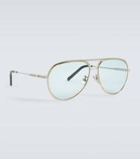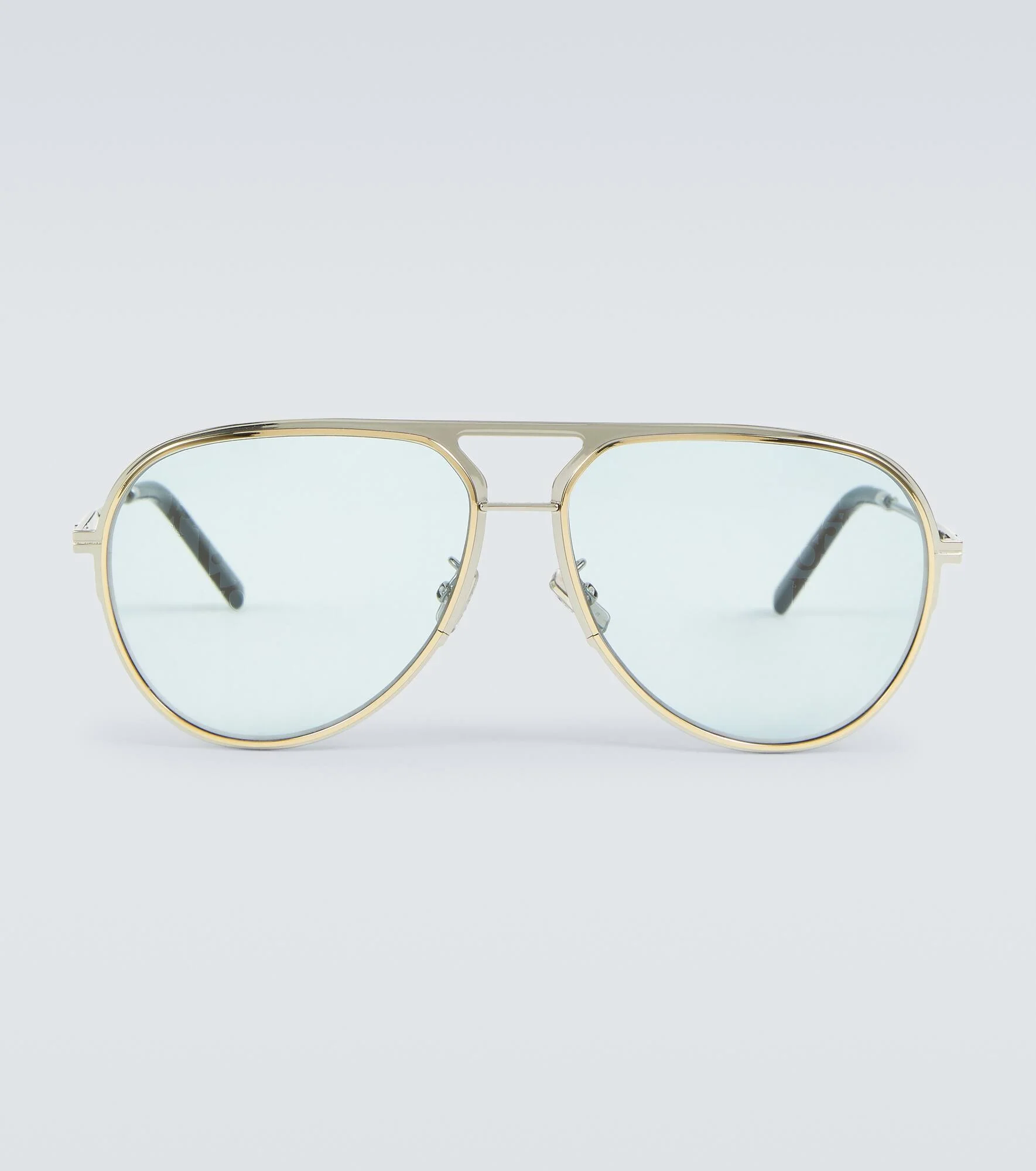 The Essential A2U sunglasses from Dior Eyewear arrive in an aviator silhouette with blue-tinted monogrammed lenses, sleek metal frames, and gold and silver outlining. Please note the color of the case may vary. Product Details - Frame color: silver - Frame material: acetate - Lens color: grey blue - The color of the case may vary, comes with a case and presentation box - comes with cleaning cloth - Lens filter category 1 - Made in Italy - Item number: P00771466 Size & Fit - Lens width: 60mm-2.35" - Bridge size: 14mm-0.55" - Earpiece length: 150mm-5.9"