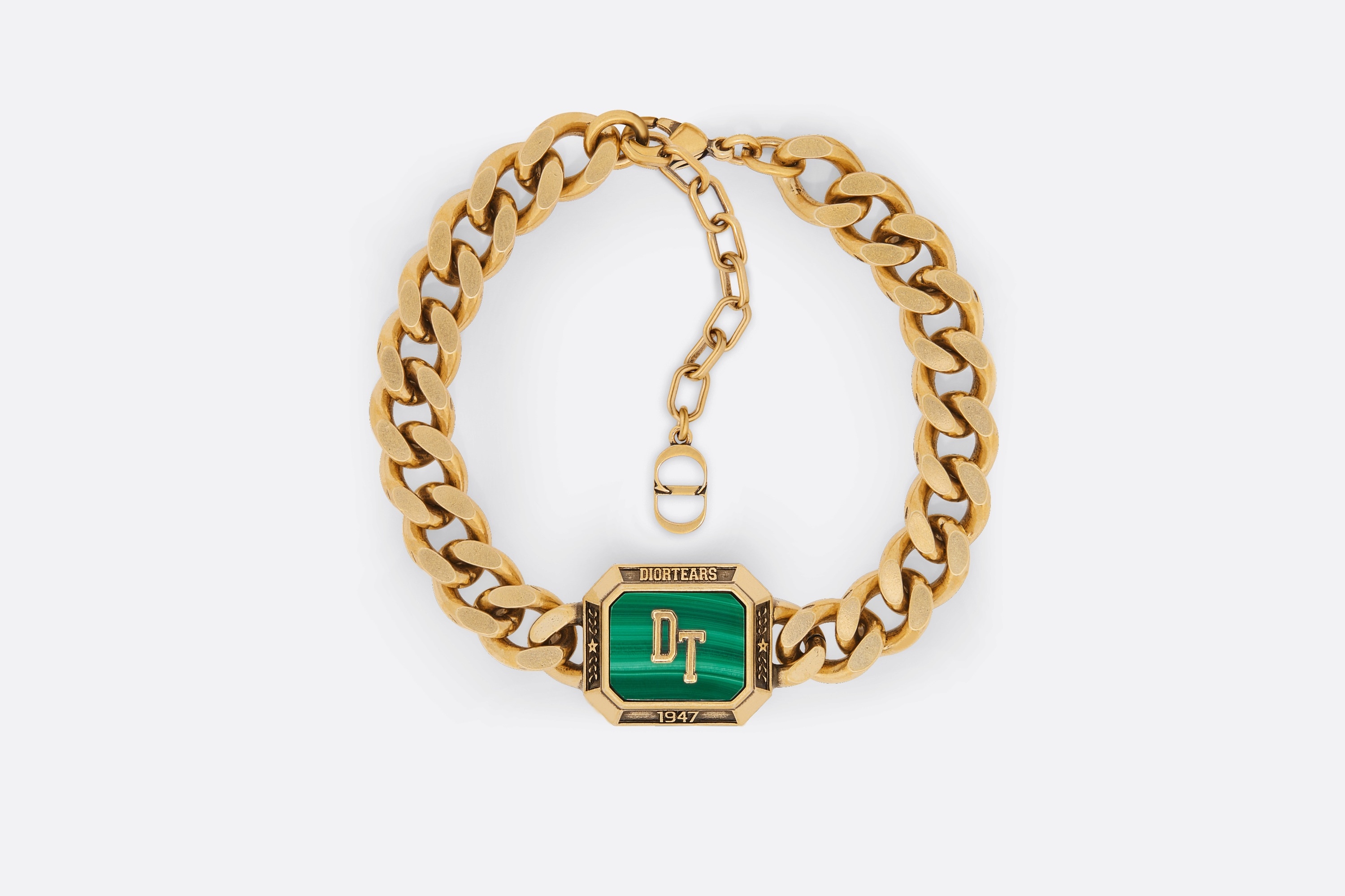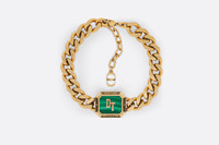 Part of the DIOR TEARS collaboration, the gold-finish brass bracelet is inspired by the American collegiate aesthetic. The links are accented by an engraved Dior Tears plate with malachite detailing. An adjustable clasp — enhanced by an openwork CD Icon signature — allows the bracelet to be worn with varying fits. The bracelet can be coordinated with the matching necklace and ring to complete the look. - Dior Tears plate with malachite detailing - Gold-finish brass - Openwork CD Icon signature detail at the end of the adjustable chain - Lobster clasp - 80% brass, 20% malachite - Made in Germany Size & Fit - One size - Adjustable length: 18.5 - 22 cm / 7.5 - 8.5 inches