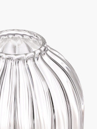 This candle holder from the Ribbed collection features a flame-blown glass cloche and casts a soothing, muted light.