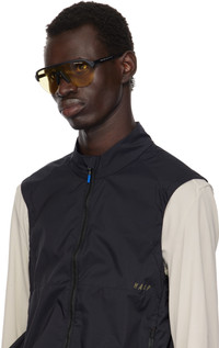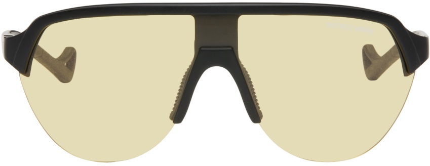 Shield-style semi-rimless TR90-injected nylon- and titanium-frame sunglasses in black. · Yellow lens with D+ lens technology · 100% UVA/UVB protection · Anti-reflective and shatterproof · Integrated rubber nose pads · Logo etched at bridge · Logo printed at temple · Cutout at rubber temple tips · Includes Ultrasuede® pouch · Size: 133 140 Supplier color: Black/D+ sports yellow Nylon, titanium. Made in Japan 242920M134016