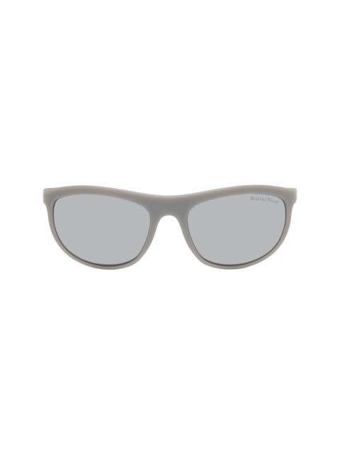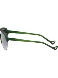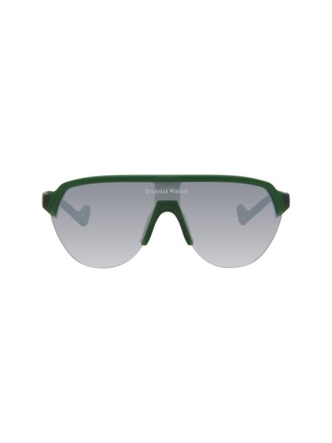 Shield-style semi-rimless TR90 injected nylon-frame sunglasses in green. · Gradient gray lens with D+ lens technology · 100% UVA/UVB protection · Anti-reflective and shatterproof · Integrated rubber nose pads · Logo printed at face and temples · Exposed titanium core wires · Eyewear chain compatible rubber temple tips · Includes Ultrasuede® pouch · Size: 140 Supplier color: Pine/D+ silver gradient Nylon, titanium. Made in Japan 251920M134007