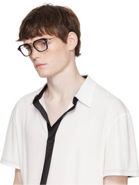Handcrafted square titanium- and acetate-frame optical glasses. · Logo etched at lens · Adjustable metal nose pads · Black acetate temple tips · Inset logo at temple tip · Includes case · Size: 51.21 140 Supplier color: Black/White gold Titanium, acetate. Made in Japan 252789M133014