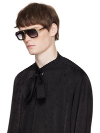 Handcrafted aviator-style titanium- and acetate-frame sunglasses. · Anti-reflective CR-39 gray lenses · Logo etched at lens · 100% UVA/UVB protection · Top bar · Adjustable titanium nose pads · Cutout and fluted detailing at temples · Inset logo at temple tip · Includes case · Size: 54.19 145 Supplier color: Matte black/Yellow gold Titanium, acetate. Made in Japan 252789M134034