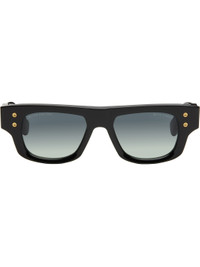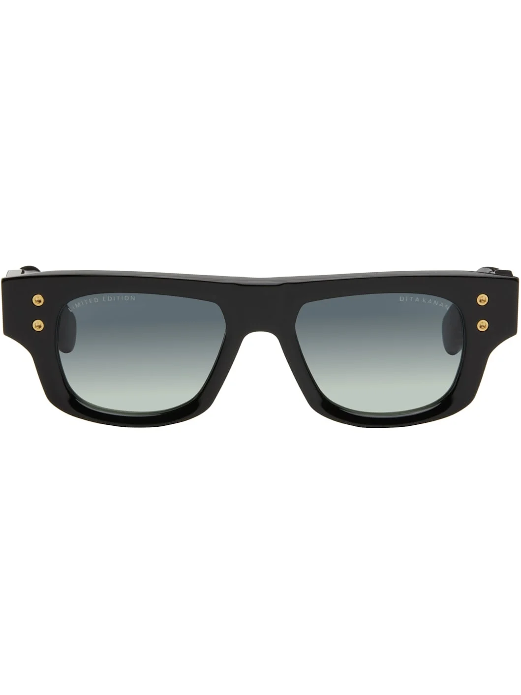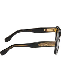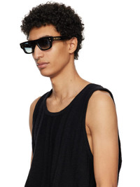 Handcrafted rectangular acetate-frame sunglasses in black. · Logo etched at CR-39 blue lenses · Scratch-resistant and anti-reflective · 100% UVA/UVB protection · Integrated nose pads · Exposed core wire · Inset logo hardware at temple tip · Gold-tone hardware · Includes case · Size: 52.20 145 This item is part of a limited run of 200. Supplier color: Black
