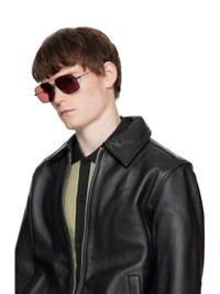 Handcrafted aviator-style titanium-frame sunglasses. · Logo etched at lens · Anti-reflective CR-39 red lenses · 100% UVA/UVB protection · Adjustable titanium nose pads · Inset black enamel at temple tips · Logo embossed at temple tip · Includes case · Size: 60.15 145 Supplier color: Black iron/Black Titanium, enamel. Made in Japan 252789M134051