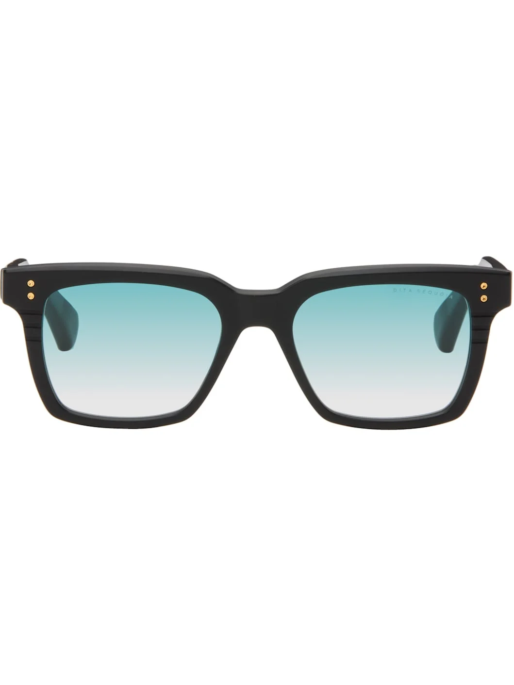 Handcrafted square acetate-frame sunglasses. · Anti-reflective gradient blue lenses · CR39 lenses · Logo etched at lens · 100% UVA/UVB protection · Stripes etched at face · Integrated nose pads · Includes case · Size: 54.20 155 Supplier color: Black Acetate. Made in Japan 252789M133005