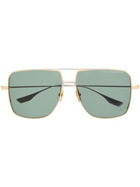 Dubsystem pilot-frame sunglasses gold-tone metal green tinted lenses pilot frame engraved detail silver-tone hardware straight arms curved tips These glasses come with a protective case. Imported Composition Metal 100% SIZE & FIT Measurement Arm Length 5.51 in(14 cm) Bridge Width 0.55 in(1.4 cm) Lens Diameter 2.48 in(6.3 cm) Total Width 5.9 in(15 cm)