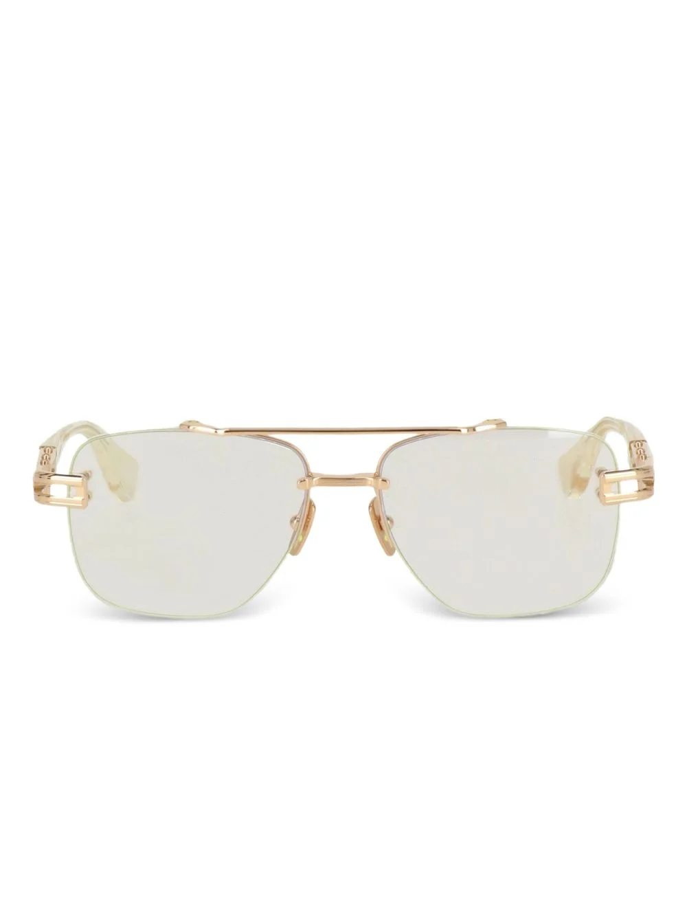 gold-accent glasses Highlights - White - Rectangle frame - Gold-tone accents - Clear lenses - Detailed temples Imported Composition Acetate 100% SIZE & FIT Measurement Arm Length 5.7 in(14.5 cm) Bridge Width 0.62 in(1.6 cm) Total Width 5.55 in(14.1 cm)