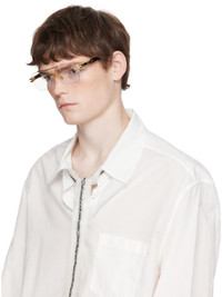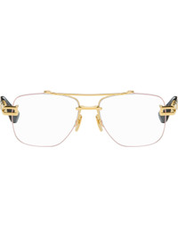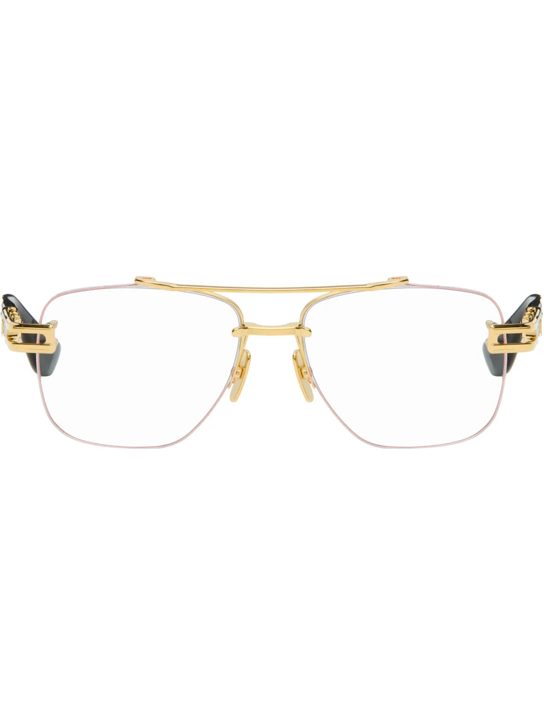 Handcrafted aviator-style titanium- and acetate-frame optical glasses. · Adjustable titanium nose pads · Double bridge · Fluted detailing at temples · Inset logo at temple tip · Includes case · Size: 57.16 145 Supplier color: Yellow gold/Black Titanium, acetate. Made in Japan 252789M133013