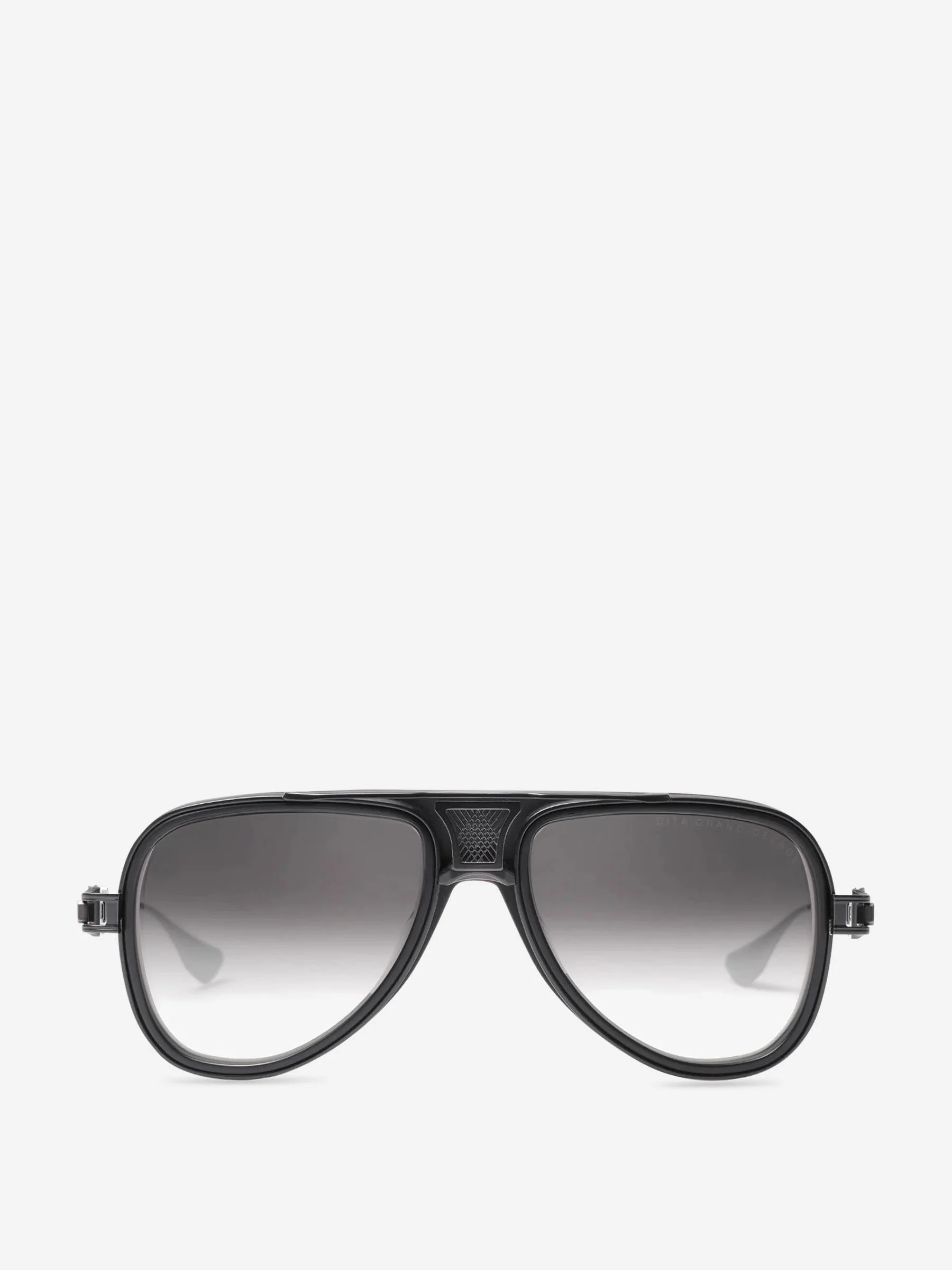 SKU: 614-003449 01 BRAND ID: DTS460-A Sunglasses By Dita • Aviator style • Acetate frame with titanium bridge and temples and mineral crystal lenses • Metal bridge crafted with visible screws and thin titanium rods terminated in acetate tips • Discreet metal logo on the left temple • UV400 protection that blocks 100% of UVA and UVB rays • Composition: Acetate, titanium, crystal • Made in: Japan