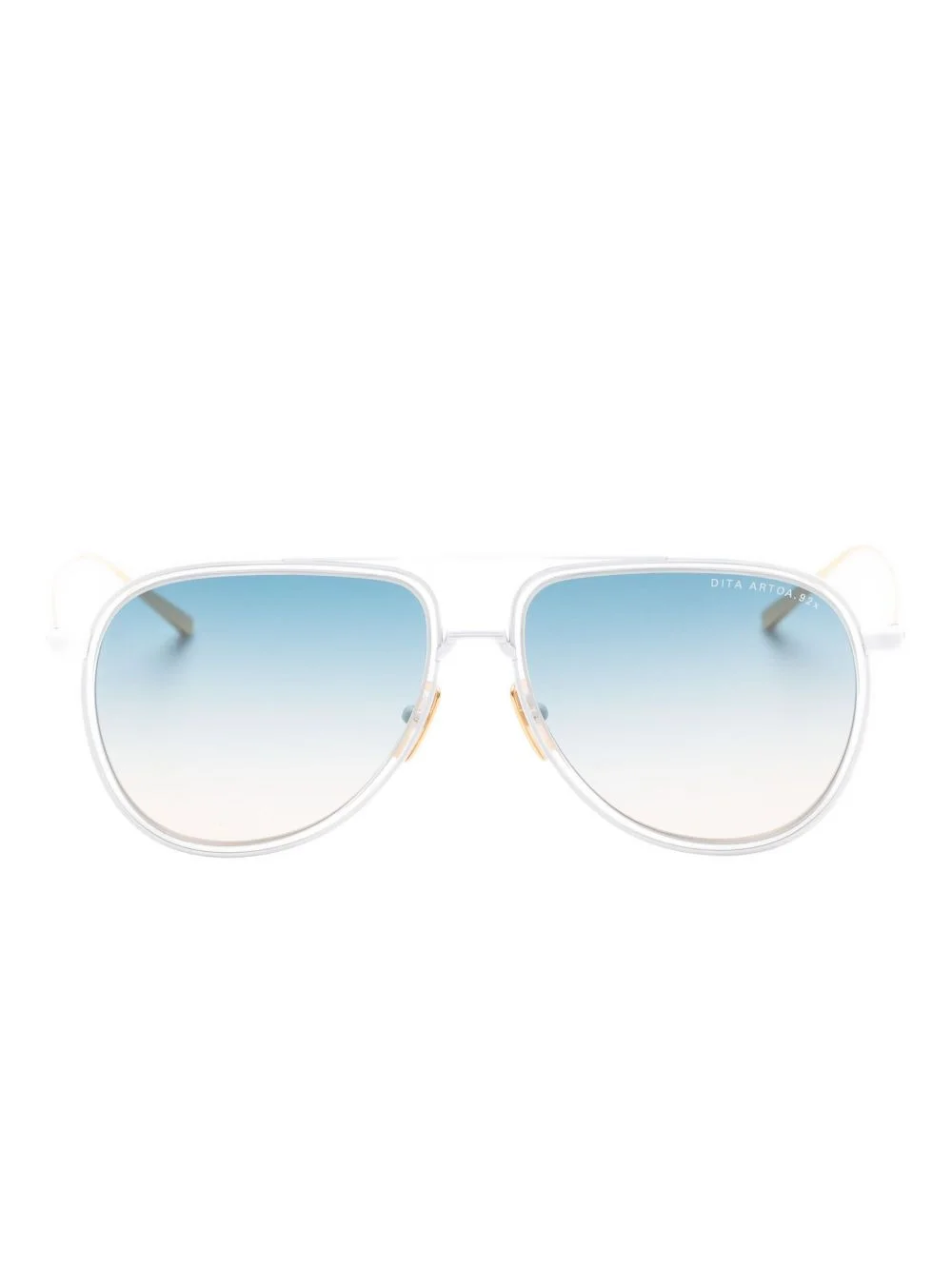 pilot frame sunglasses Highlights - Gold - Pilot frame - Nose pads - Gradient lenses - These glasses come with a protective case. Imported Composition Acetate 100% SIZE & FIT Measurement Arm Length 5.7 in(14.5 cm) Bridge Width 0.59 in(1.5 cm) Lens Diameter 2.28 in(5.8 cm) Total Width 5.9 in(15 cm)