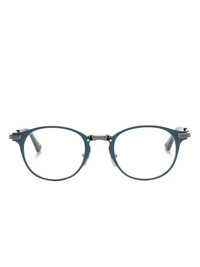 Radicon round-frame glasses Highlights - Navy blue/silver-tone - Metal/acetate - Round frame - Clear lenses - Lens decal - Metal brow bar - Nose pads - Straight arms - Curved tips - All glasses from farfetch are sold as non-prescription frames. - These glasses come with a protective case. Imported Composition Metal 100%, Acetate 100%, Acrylic 100% SIZE & FIT Measurement Arm Length 5.7 in(14.5 cm) Bridge Width 1.88 in(4.8 cm) Lens Diameter 0.82 in(2.1 cm) Total Width 5.35 in(13.6 cm)