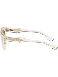 Handcrafted cat-eye transparent acetate-frame sunglasses. · Anti-reflective pink lenses · 100% UVA/UVB protection · Logo and text etched at lenses · Integrated nose pads · Exposed core wires · Inset logo hardware at temple tip · Gold-tone hardware · Includes case · Size: 56.16 130 This item is part of a limited run of 250. Supplier color: Vintage clear Acetate. Made in Japan 252789M134017