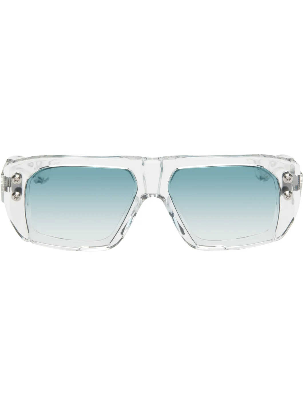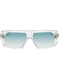 Handcrafted rectangular transparent acetate-frame sunglasses. · Anti-reflective CR-39 blue gradient lenses · 100% UVA/UVB protection · Logo etched at lens · Integrated nose pads · Silver-tone rivets at face and temples · Inset logo hardware at temple tip · Includes case · Size: 58.14 150 Supplier color: Crystal clear/Antique silver