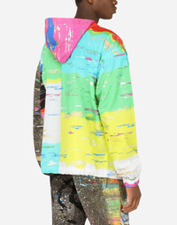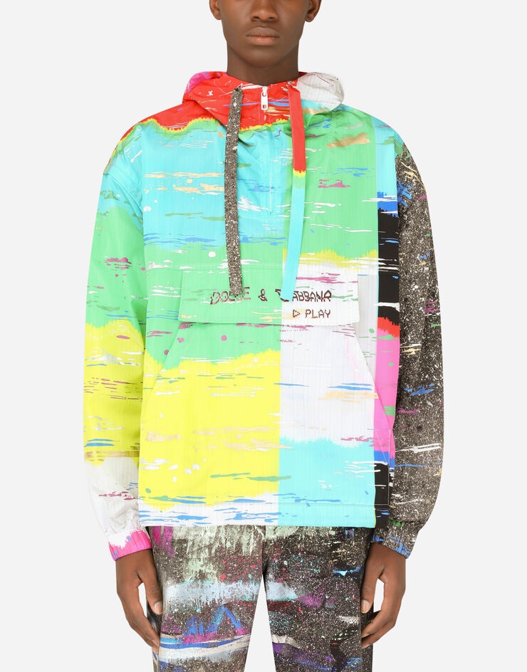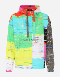 The “DG TOGETHER” runway show celebrates the freedom to express ourselves through fashion. The designers have observed the new social trend through the media, to create a youthful and contemporary collection that focuses on individuality. Long-sleeved nylon hoodie with multi-colored glitch print: • Loose fit • Half-zip fastening • Drawstring hood • Pouch pockets with flap • Drawstring hem • Mesh lining • The piece measures 65.5 cm - 25.8 inches from the rear collar seam on a size M • The model is 185 cm - 72.8 inches tall and wears a size M • Made in Italy Care And Details External composition: 100% Polyamide