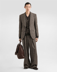 The scene is set for Dolce&Gabbana's distinctive and iconic aesthetic codes in the Collection from Men's Fall/Winter 2025 Fashion Show. The evening lights up with radiant brooches and is enriched with classic suits and blazers of timeless elegance. These elegant trousers are perfect for those looking for a refined and timeless style. Made with a fine glen plaid alpaca blend fabric, they are perfectly suited to any formal or casual chic occasion. Alpaca blend glen plaid trousers: • Multi-colored • Pre-made belt • The model is 185 cm tall and wears a size 48 IT • Made in Italy External Composition: 28% Alpaca, 27% Wool, 25% Cotton, 20% Polyamide