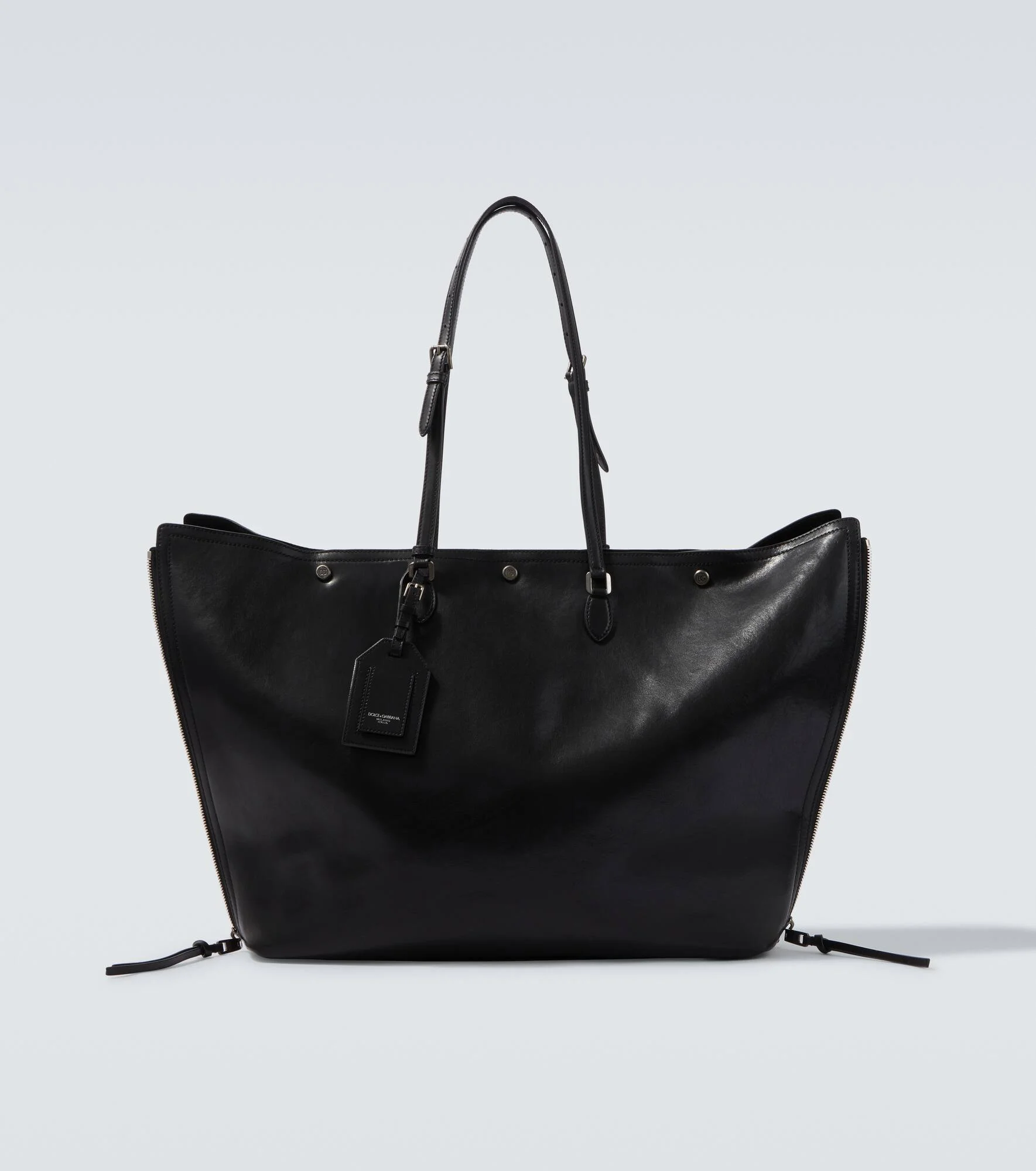 This Atene tote bag from Dolce&Gabbana is defined by a sleek leather construction. The design is fitted with a removable pouch, and features a spacious interior that expands further with zip fastening on both sides. Product Details - Material: calf leather - Lining: suede - Made in Italy - Designer color name: Black - Item color: black - Hardware color: silver - Adjustable top handles - Internal details: single compartment - Detachable zipped pouch - Closure: snap-buttoned fastening - Includes: dust bag - Item number: P01049973 Size & Fit - Height 42cm-16.5" - Width 69cm-27" - Depth 14cm-5.5" - Adjustable shoulder strap - Min. length shoulder strap 64cm-25" - Max. length shoulder strap 81cm-32" - Clutch height 17.5cm-7" - Clutch width 25cm-10"