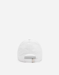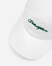 Pictorial, at times volumetric with a textured effect, the decorative “calligraphic-naturalistic” majolica in solid-color green gives life to a collection distinguished by eclectic silhouettes, some stolen from the world of sports, with a cool and light vibe. The vibrant two-tone accenting – green and white – is designed to enhance a series of details, such as the pockets, the green piping paired with the white silk pajamas, the stripes on the polo-shirts, the cuffs on the shirts or the jersey inserts on the T-shirts. Cotton drill baseball cap with signature Dolce&Gabbana logo embroidery: • White • Adjustable rear strap with branded metal buckle • Gros-grain sweatband • Lined • Made in Italy External composition: 97% Cotton 3% Spandex Internal composition: 100% Viscose