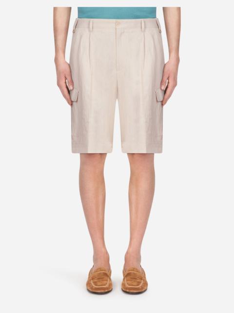 With the luxury summer collection the designers have masterfully reinvented the contemporary luxury which highlights the male body, enriching it with exclusive fabric and precious details. :Cargo linen bermuda shorts with large pockets on the sides: • Regular fit • Loops from the waist • Button closure and hidden zip • French seam pockets on the front and welt pockets with button on the back • The crotch measures 23 cm - 9.1 inches from the centre back of the belt and the bottom is 30 cm - 11.8 inches wide on a size 48 IT • The piece measures 49 cm - 19.3 inches from along the side on a size 48 IT • The model is 185 cm - 72.8 inches tall and wears a size 48 IT • Made in Italy Care And Details Composition: 100% Linen