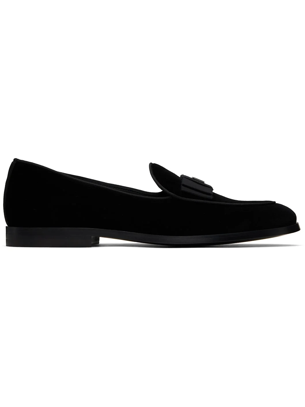 Velvet loafers in black. - Moc toe - Piping throughout - Bow accent and logo hardware at vamp - Buffed leather lining - Stacked leather heel with rubber injection - Leather sole Supplier color: Nero