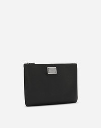 Understated and versatile, this soft grainy calfskin and nylon pouch features the ruthenium-plated logo tag. • Top fastening with zipper and slider with logo • Nylon lining with flat pocket • Item comes with a branded dust bag • Measurements: 21 x 31.5 x 1 cm • Made in Italy External composition: 55% Calfskin 40% Polyamide 5% Acrylic Internal composition: 100% Polyamide