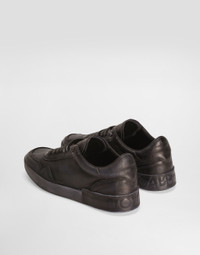The scene is set for Dolce&Gabbana's distinctive and iconic aesthetic codes in the Collection from Men's Fall/Winter 2025 Fashion Show. The evening lights up with radiant brooches and is enriched with classic suits and blazers of timeless elegance. This Portofino sneaker is crafted from fine calfskin, with design details that make it a must-have for those looking for style and comfort. Calfskin sneakers: • Black • Portofino shape • TPU sole • Felt insole • Polyurethane insole wrapped in leather, personalized with label • Macrologo band knitting details on the sole • Matching painted eyelets • Sole height 10 mm • Item equipped with a black Cotton bag and a box made of recycled paper cellulose fiber • Made in Italy External Composition: 100% Calfskin