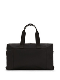 logo-print holdall Highlights - Black - Leather trim - Logo print to the front - Top zip fastening - Two long top handles - Adjustable detachable shoulder strap - Front zip-fastening pocket - Internal logo patch - Internal zip-fastening pocket - Main compartment Made in Italy Composition Outer: Polyamide 50%, Acrylic 20%, Viscose 15%, CALFSKIN 15% Lining: Polyamide 85%, CALFSKIN 15%