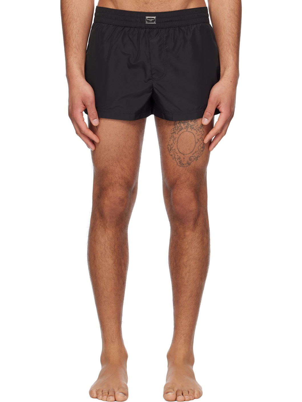 Polyester taffeta swim shorts. · Elasticized waistband · Concealed drawstring and logo plaque at waistband · Three-pocket styling · Mock fly · Briefs-style stretch nylon jersey underlay Part of the DNA collection. Supplier color: Nero Body: 100% polyester. Lining: 88% polyamide, 12% elastane. Made in Italy 251003M208000