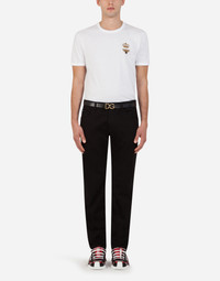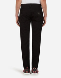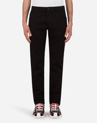 In the Dolce&Gabbana collection, our Sicilian roots and tailoring expertise merge to create a new sophisticated and contemporary update of our signature aesthetic. Five-pocket slim-fit jeans in dark blue stretch denim: • Regular fit • Fly-covered zipper and button fastening • Metal Dolce&Gabbana logo plate on the back • The crotch measures 16 cm - 6.3 inches from the center back of the waistband and the hem is 17 cm - 6.7 inches wide on a size IT 48 • The item measures 105 cm - 41.3 inches on the outer leg on a size IT 48 • The model is 185 cm - 72.8 inches tall and wears a size IT 48 • Made in Italy Care And Details Composition: 98% Cotton 2% Spandex