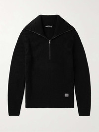Logo-Appliquéd Ribbed Wool Half-Zip Sweater