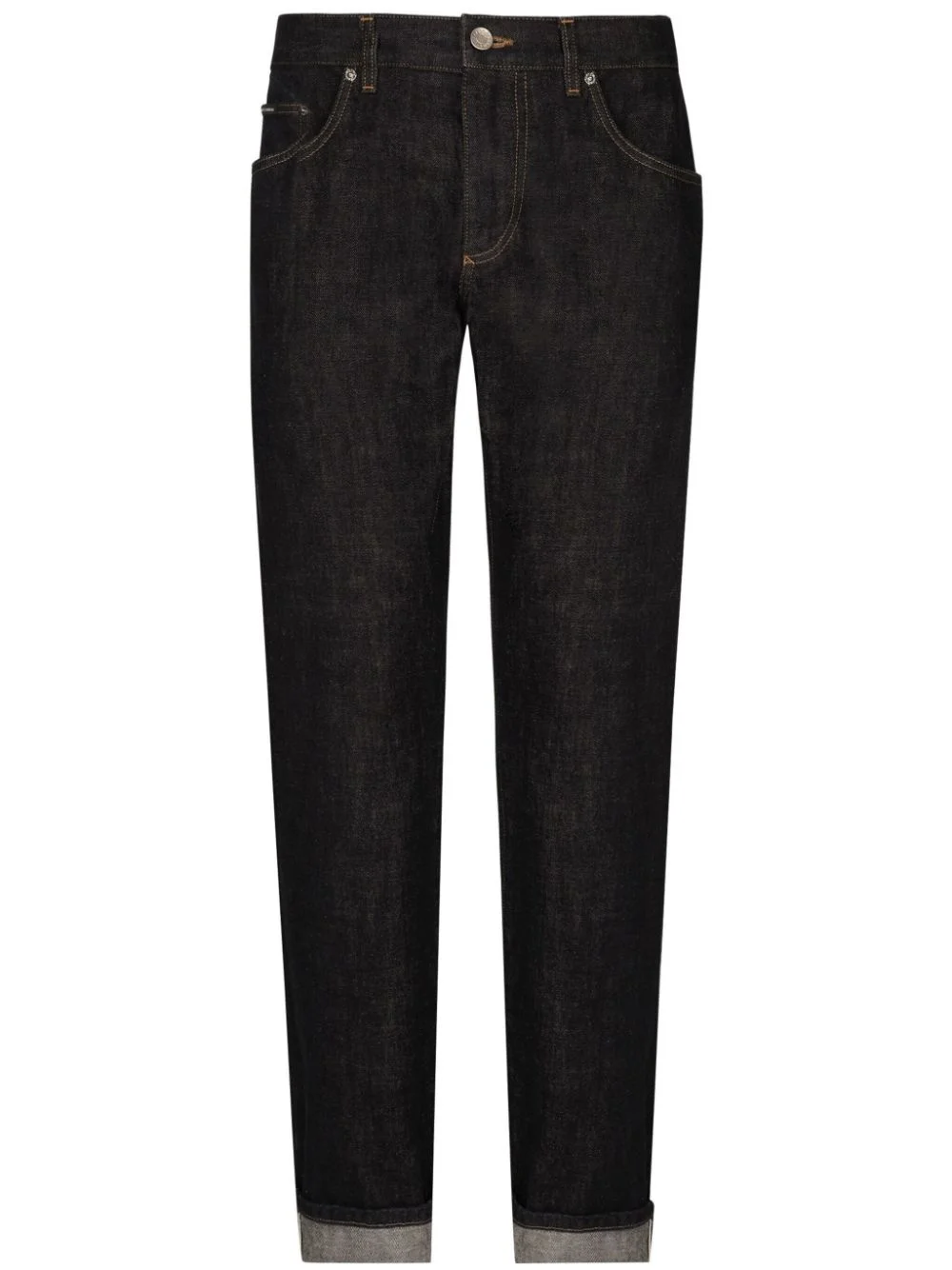 logo-tag jeans Highlights - Navy blue - Cotton blend - Raw denim - Logo tag - Straight leg - Concealed fly and button fastening - Classic five pockets Made in Italy Composition Outer: Cotton 100%